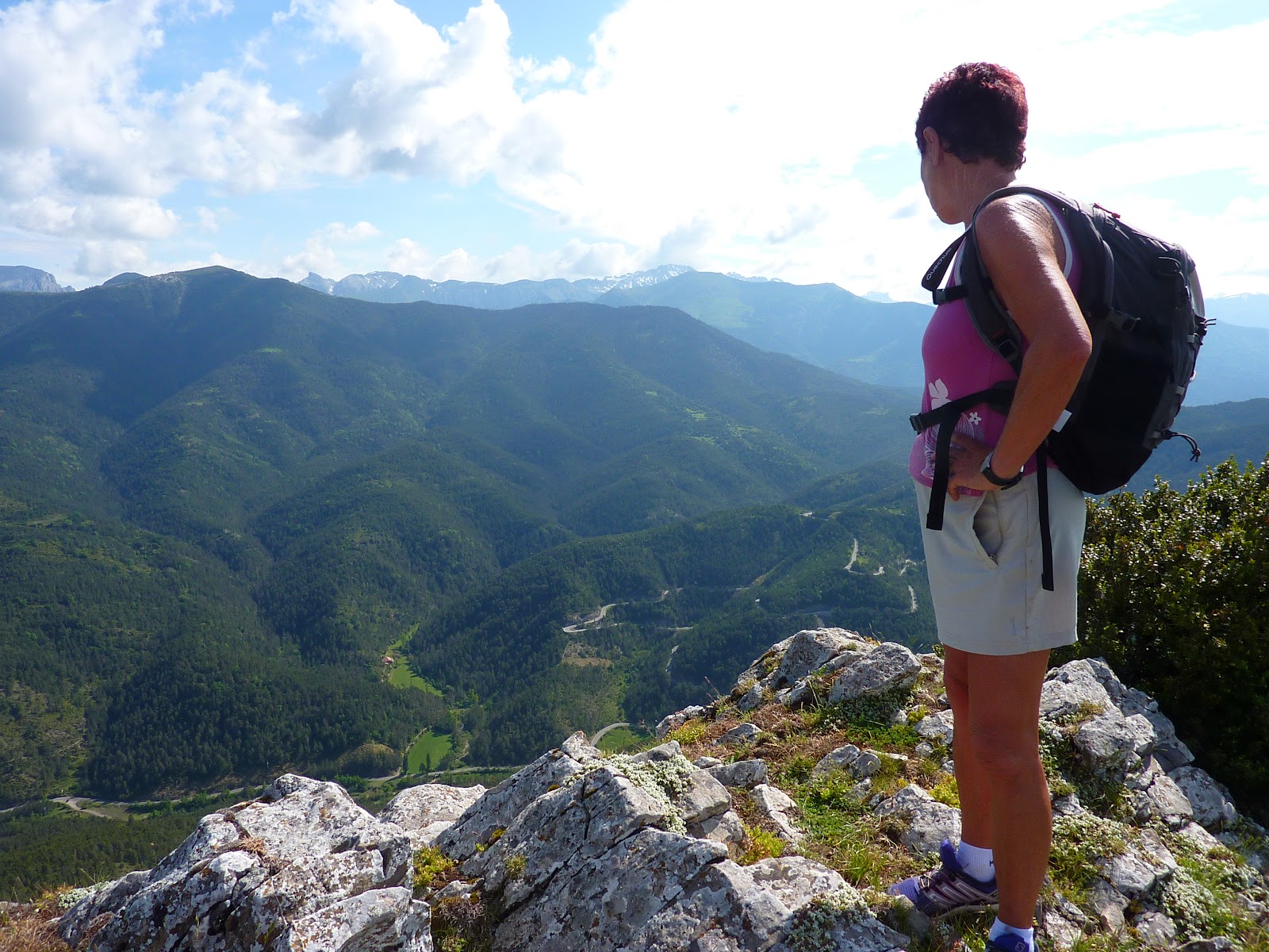 Al llegar al alto de la sierra, la cosa se normalizó y entre que la subida fuerte ya la habíamos hecho y una ligera brisa que se dejaba notar, el sudor fue desapareciendo poco a poco. Todo empezaba a cambiar y de la espesura del bosque pasamos a collados de fina hierba y vistas amplias y alucinantes por todos los lados.