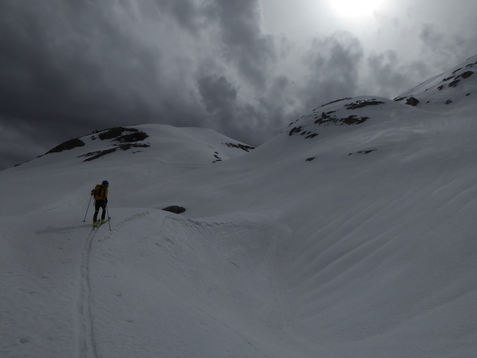 A ninguno se nos ocurrió nombrar la palabra lluvia, aunque yo creo que no teníamos nada claro que no fuese a caer. La única ventaja era que la nieve poco más se podía estropear ya que desde el punto de salida estaba como en la pescadería y aquello no cambiaba en ningún momento, ni por altitud, ni por orientaciones.