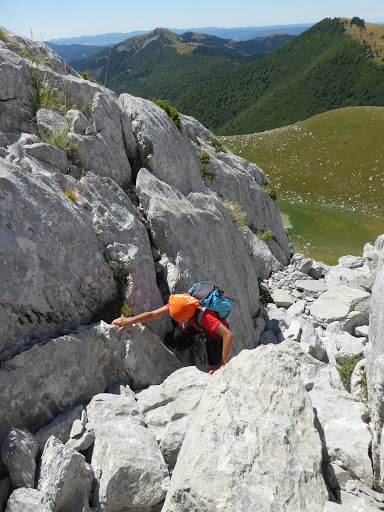 Tras la foto de cima, iniciamos el descenso por el único sitio que ya conocía Elia de la primera vez que subió a Ezcaurri, aunque me comentó que no lo recordaba muy bien.